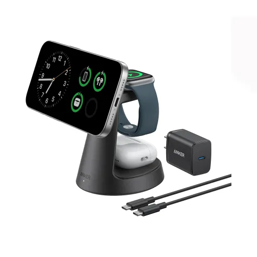 شارژر بی سیم 15 وات انکر مدل Anker MagGo Wireless Charging Station 3-in-1 Qi2 B25M4